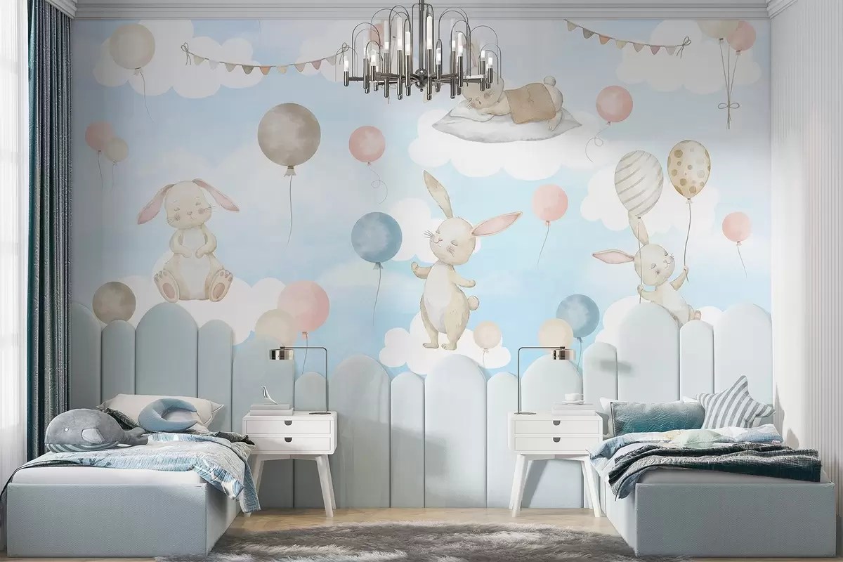 Zidne murale Zečevi s balonima na oblacima br. w04337