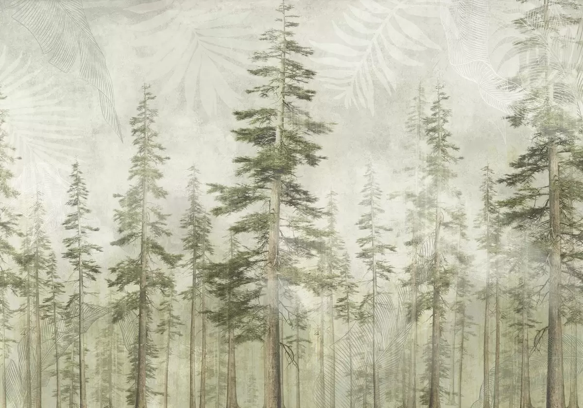Zidne murale Borova šuma s teksturom starinskog papira i finim uzorcima br. w04342