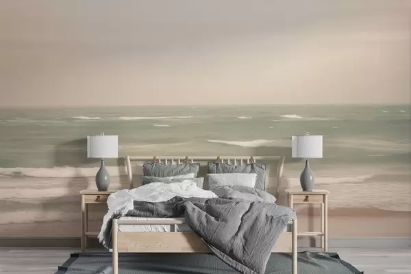 Zidne murale Nježni ružičasto-zeleni morski krajolik s blagim valovima br. w04348