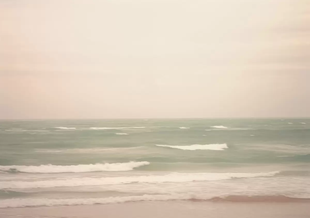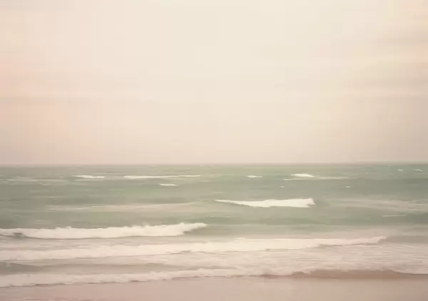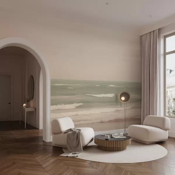Zidne murale Nježni ružičasto-zeleni morski krajolik s blagim valovima br. w04348