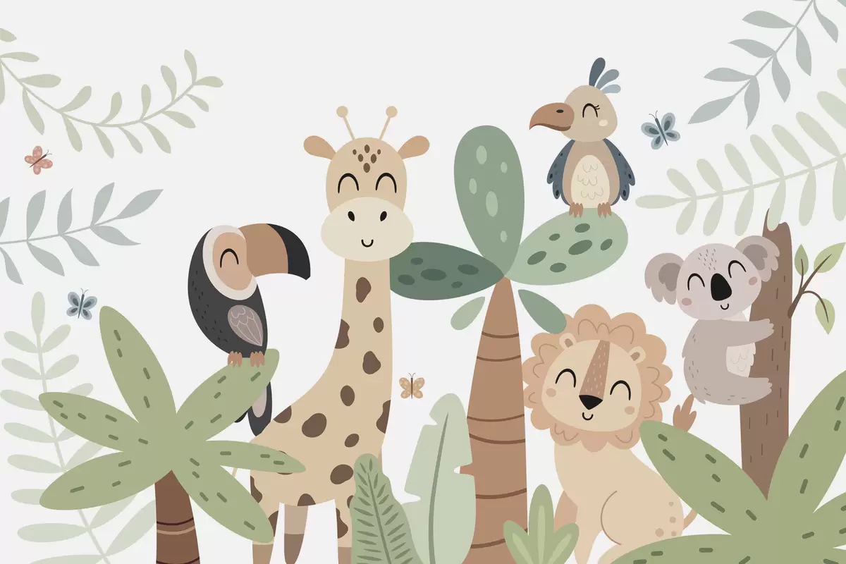 Zidne murale Slatke životinje u džungli br. w04357