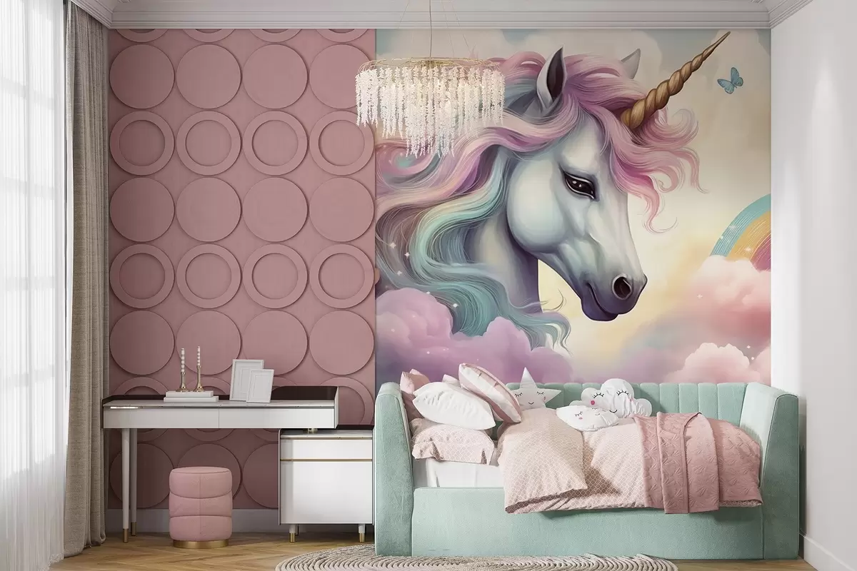 Zidne murale Jednorog na oblačnom nebu s dugom br. w04372
