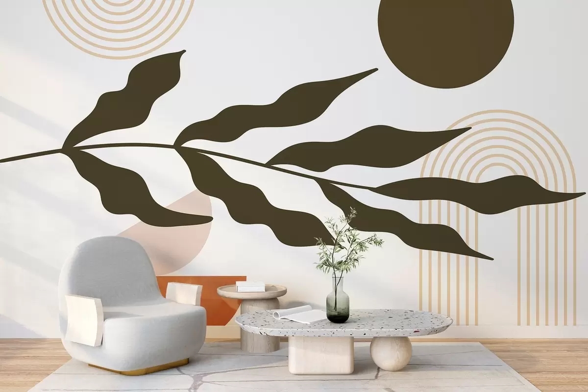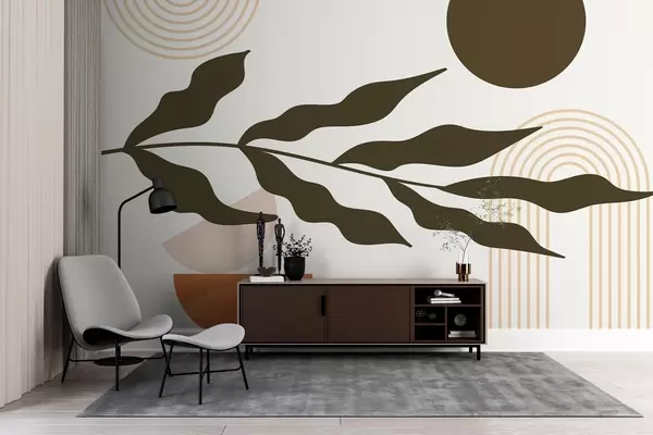 Zidne murale Apstrakcija, lišće, linearni lukovi br. w04386