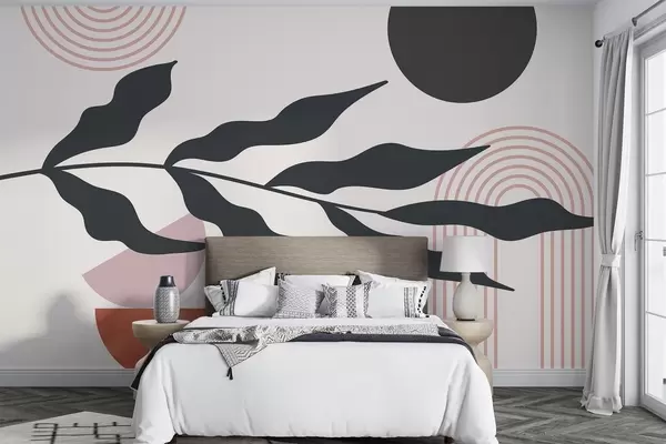 zidne murale Apstrakcija, lišće, linearni lukovi w04386v2