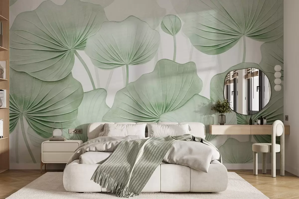 Zidne murale Listovi lotosa s imitacijom oštećene teksture br. w04412