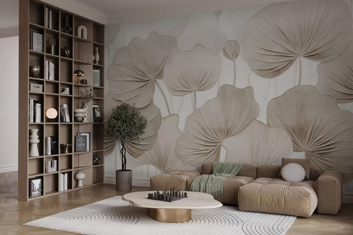 Zidne murale Listovi lotosa s imitacijom oštećene teksture br. w04412v1