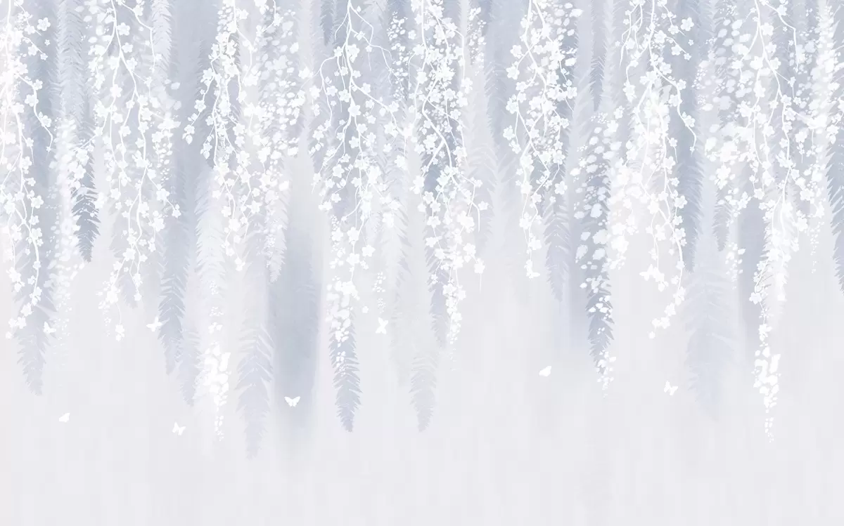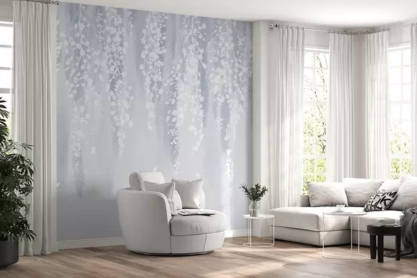zidne murale Hladna plava verzija grana s bijelim cvjetovima w04417v2