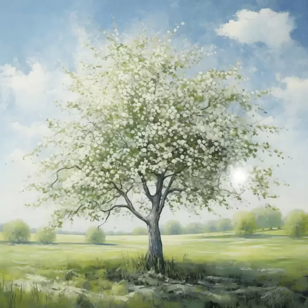 Zidne murale Usamljeno drvo u polju s bijelim cvijećem br. w04445