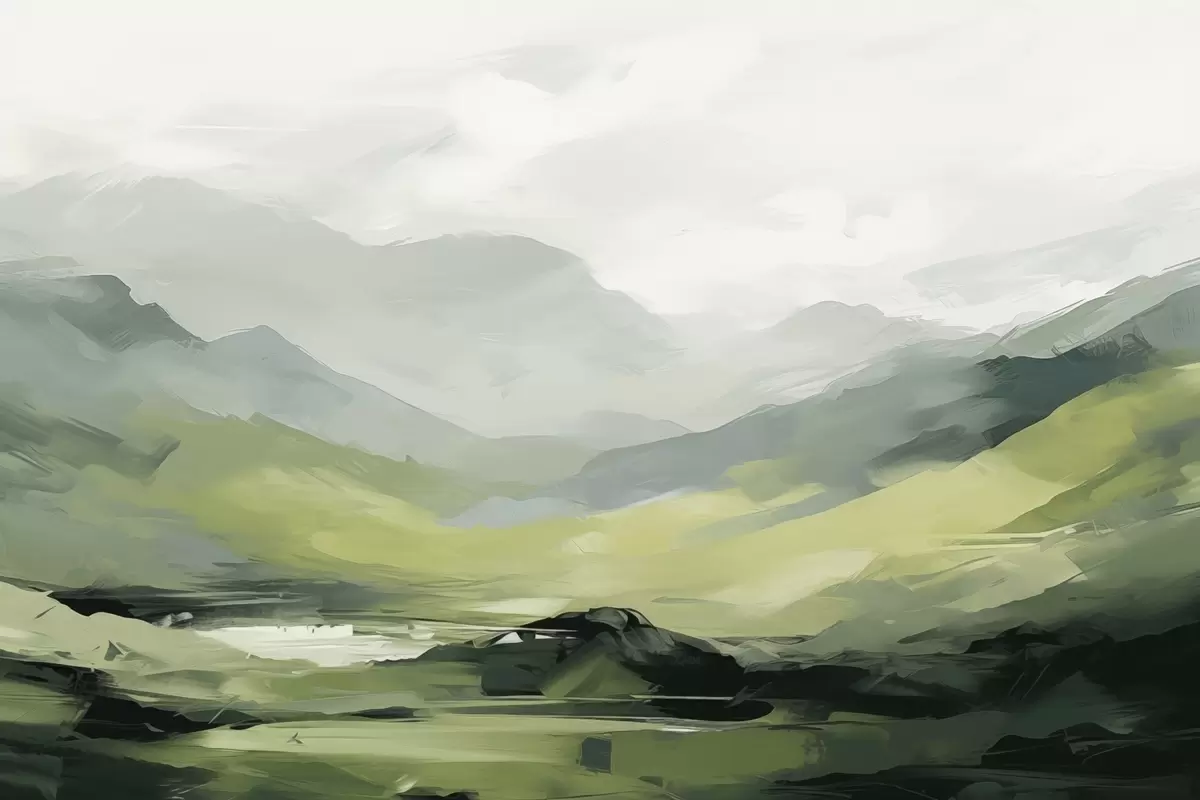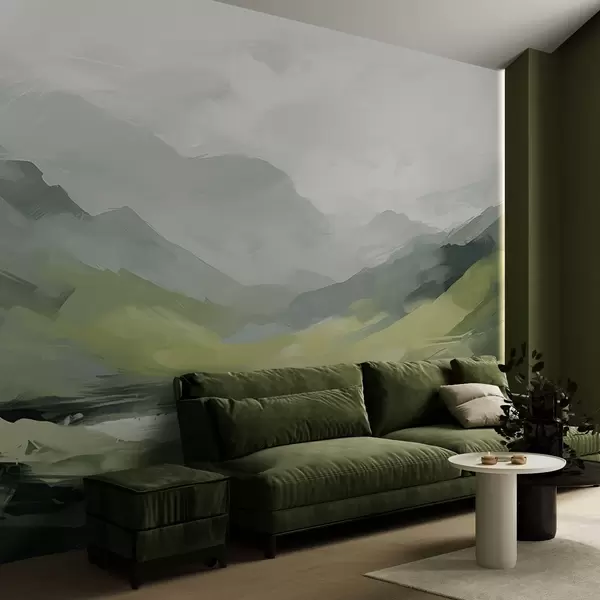 zidne murale Apstraktni planinski krajolik u nijansama zelene w04447
