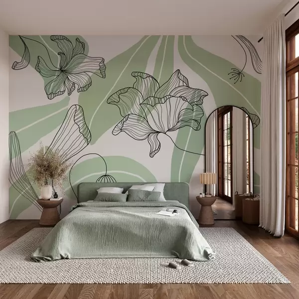 Zidne murale apstraktno lišće i cvijeće u zelenim tonovima br. w04499v1