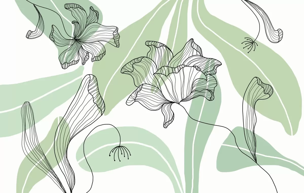 Zidne murale apstraktno lišće i cvijeće u zelenim tonovima br. w04499v1