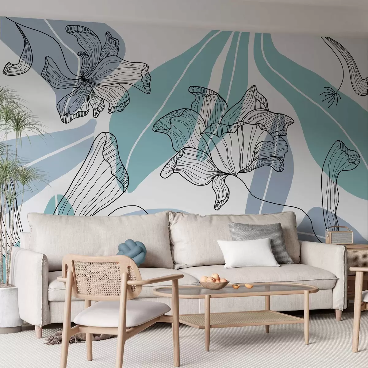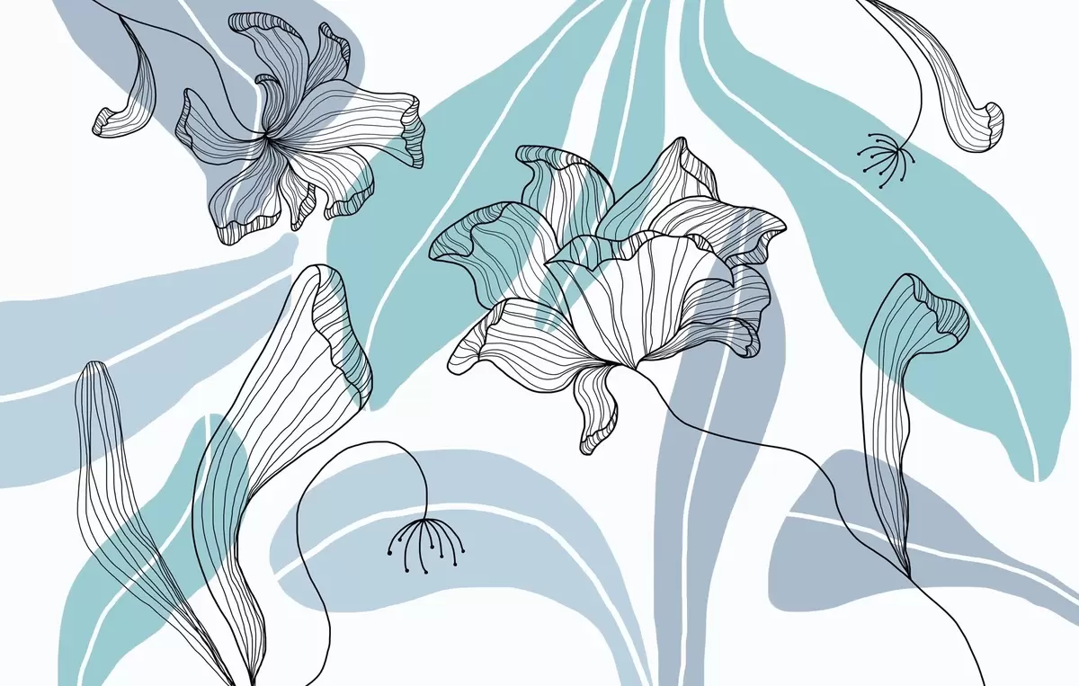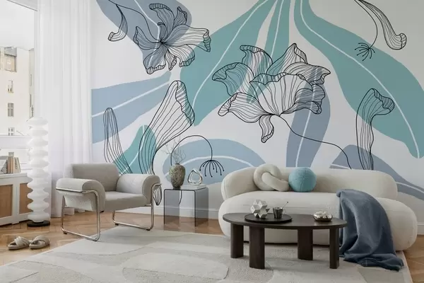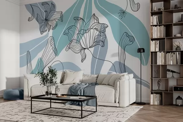 Zidne murale apstraktno lišće i cvijeće u plavim tonovima br. w04499v2