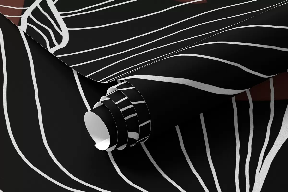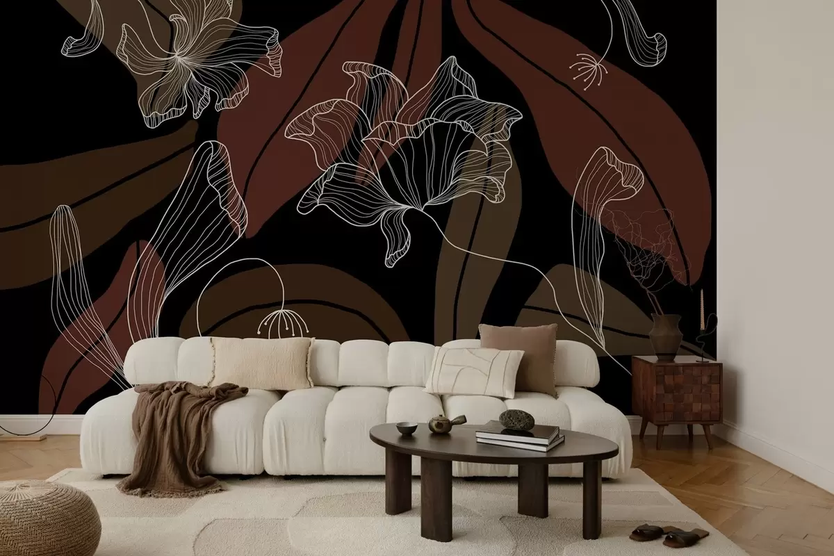 zidne murale apstraktno lišće i cvijeće u puderastim i bež tonovima na tamnoj pozadini w04499v3