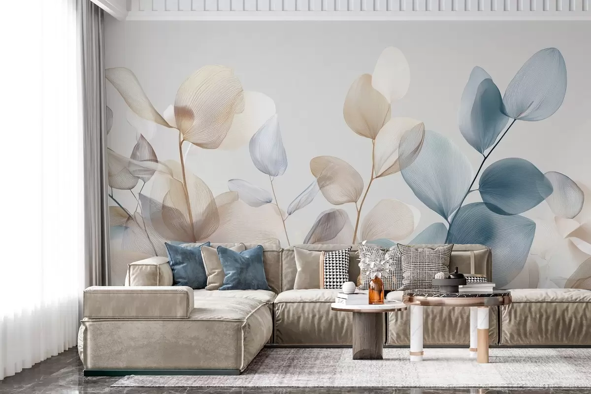 Zidne murale elegantni listovi eukaliptusa s žilicama br. w04503