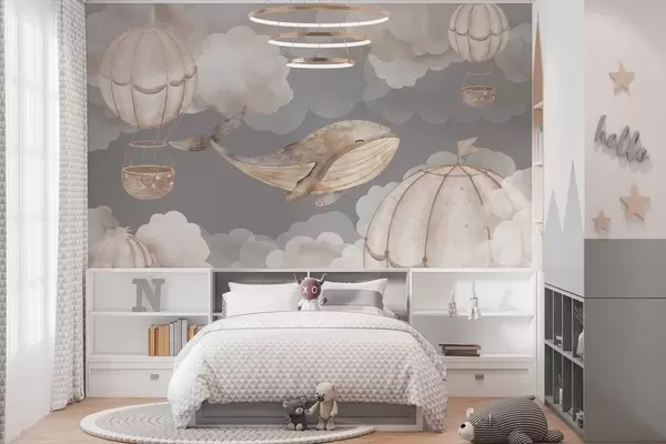 Zidne murale Kit i baloni na vrući zrak među mekim oblacima br. w04522
