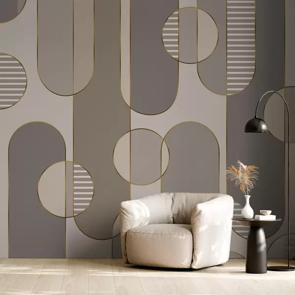 Zidne murale Geometrijski apstrakt sa smeđom bojom i linijama br. w04523v2