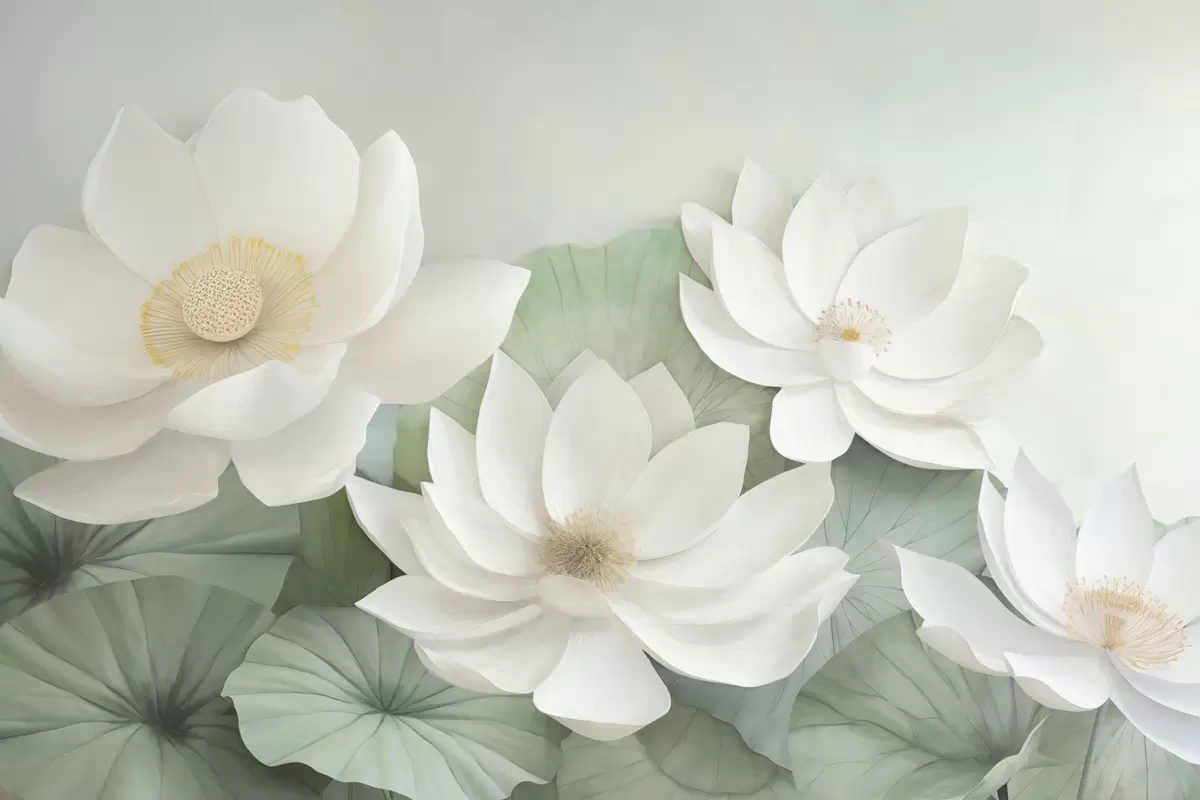 Zidne murale Lotosov cvijet u lišću br. w04539
