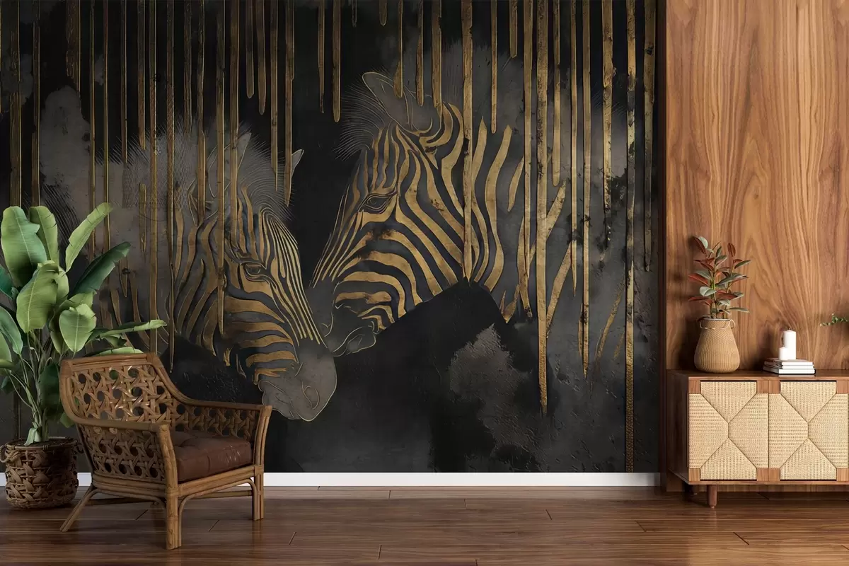 Zidne murale Zebre s apstraktnom crnom pozadinom br. w04548