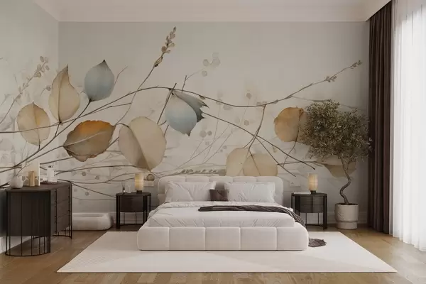 Zidne murale Nježne grane s lišćem u bež tonovima br. w04579