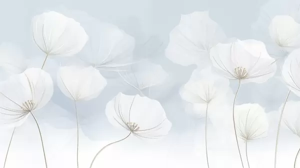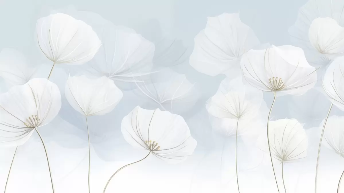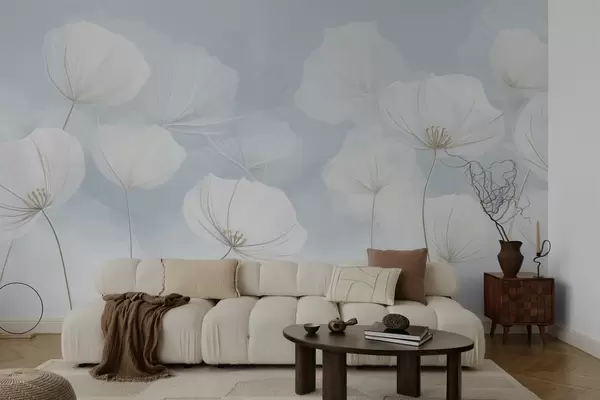 Zidne murale Prozračno bijelo cvijeće na plavoj pozadini br. w04580