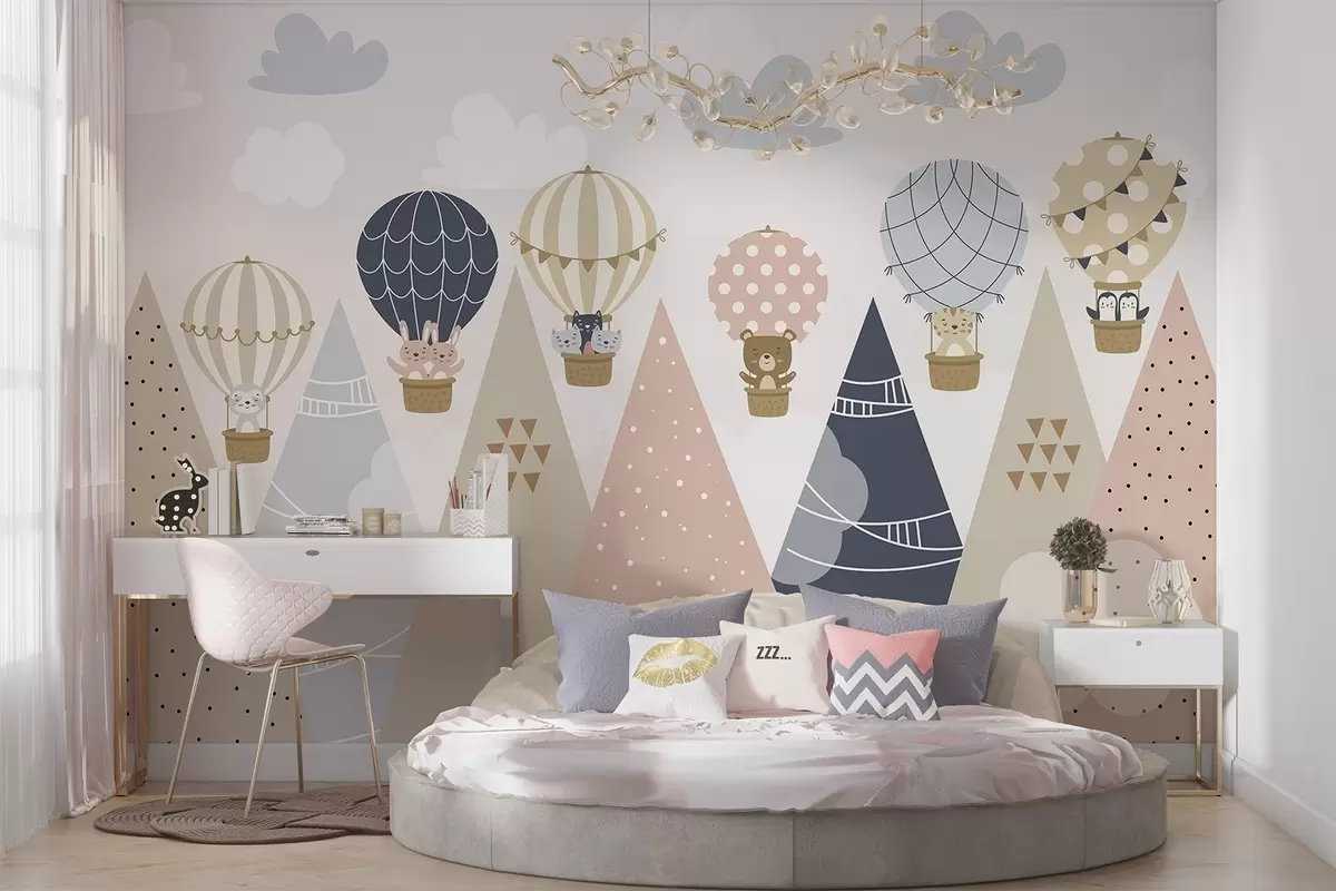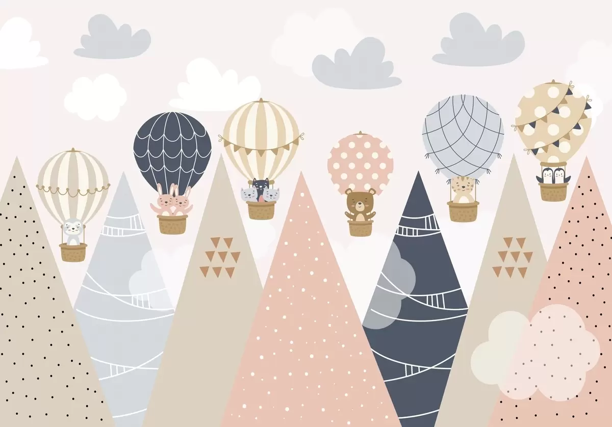 Zidne murale Baloni sa životinjama iznad planina br. w04587