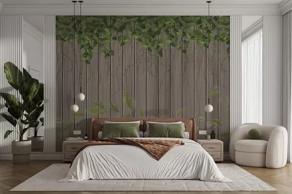 Zidne murale Imitacija drvenih ploča s visećim lišćem br. w04603