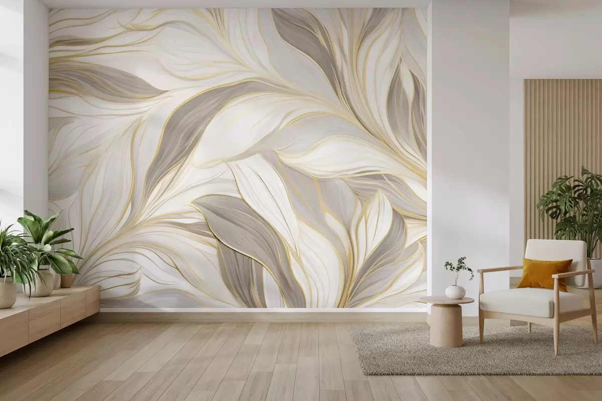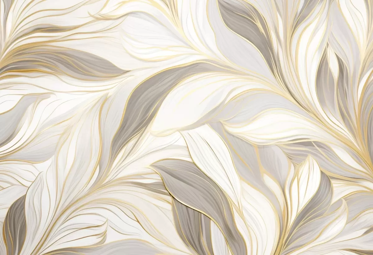 Zidne murale Listovi s glatkim krivuljama u svijetlo bež-sivim tonovima br. w04609