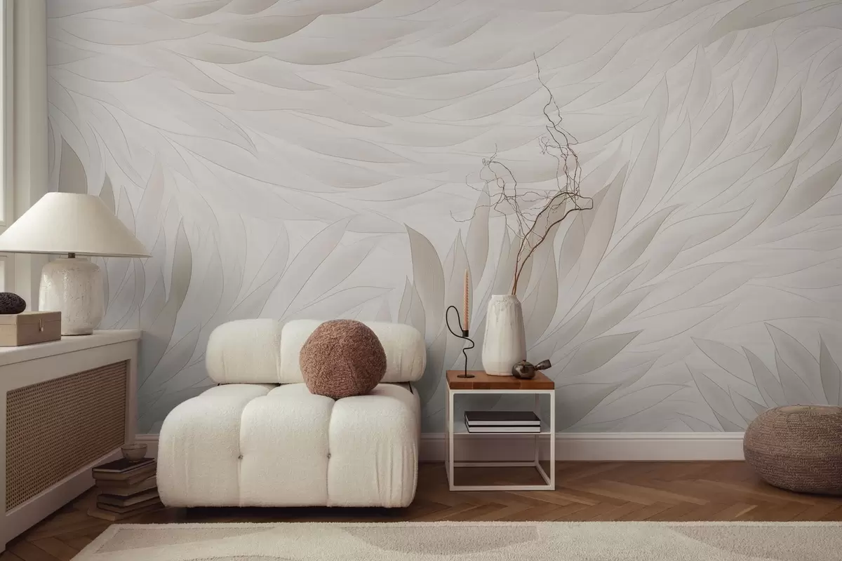 zidne murale Valoviti listovi u mekim krem nijansama w04610