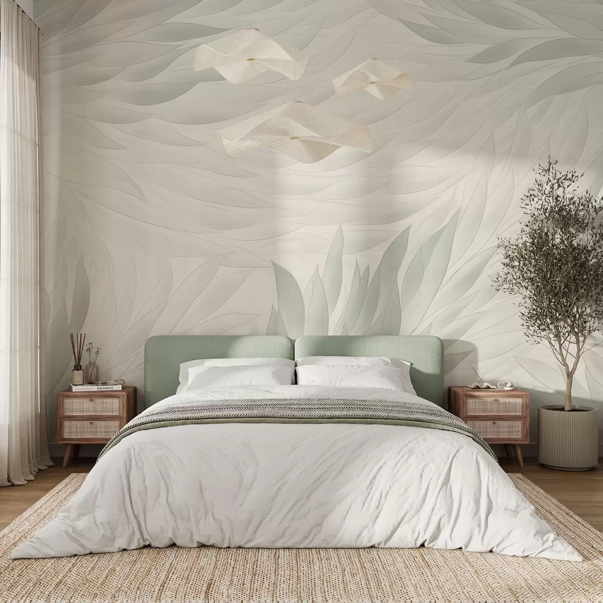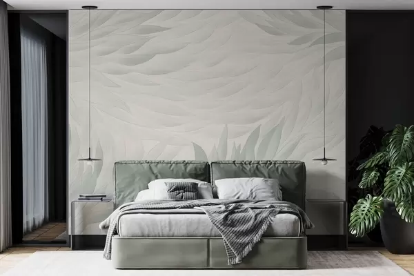 Zidne murale Valoviti listovi u nježnim zelenkasto-bež nijansama br. w04610v2