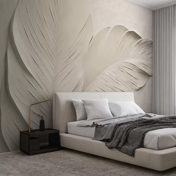 Zidne murale Reljefni bež listovi s mekim sjenama br. w04614