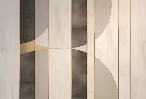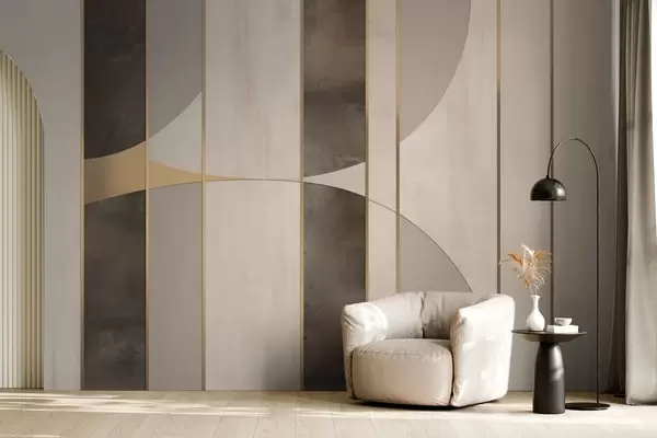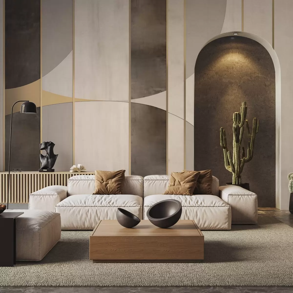 Zidne murale Geometrijski paneli s lukovima i akcentima boje šampanjca br. w04616