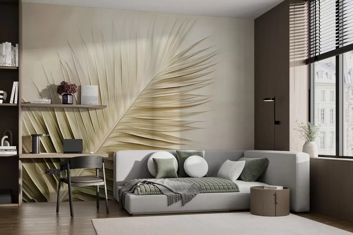 Zidne murale Bež palmino lišće na mekoj teksturiranoj pozadini br. w04618