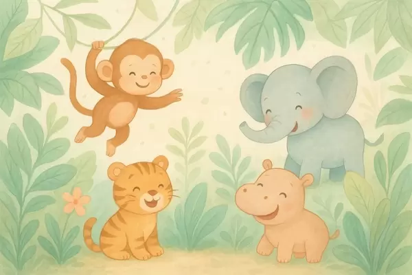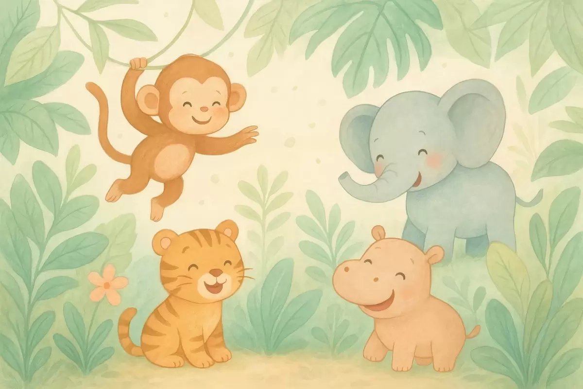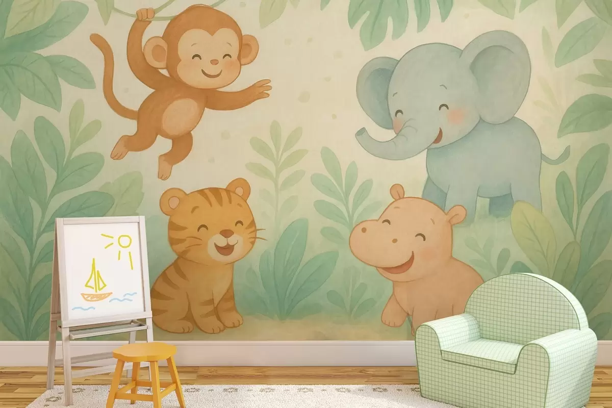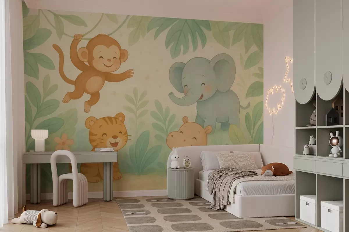 Zidne murale slatke bebe životinja u džungli br. w04622