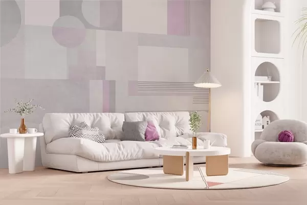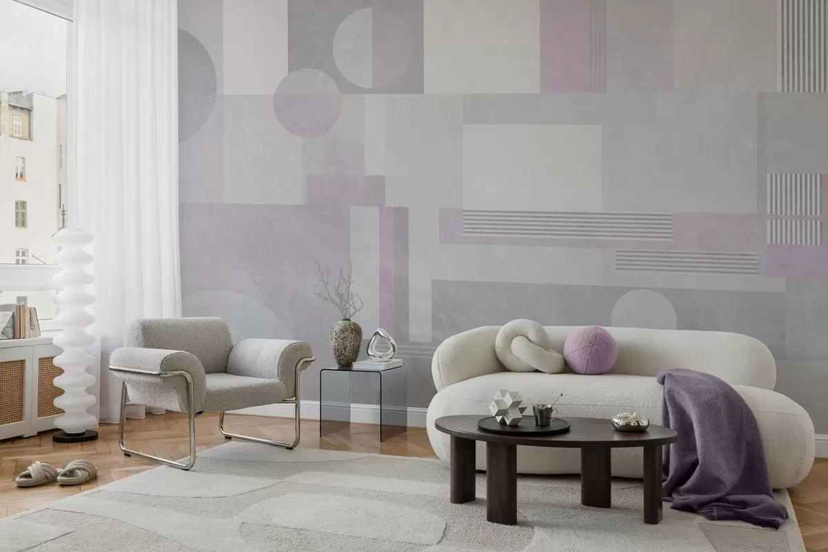 Zidne murale apstraktna geometrija u sivim i lavandinim tonovima br. w04635v1