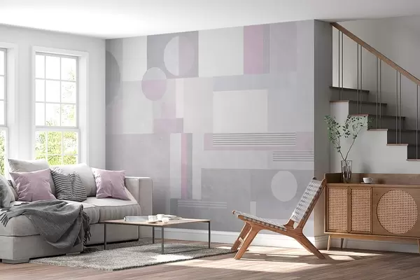 Zidne murale apstraktna geometrija u sivim i lavandinim tonovima br. w04635v1