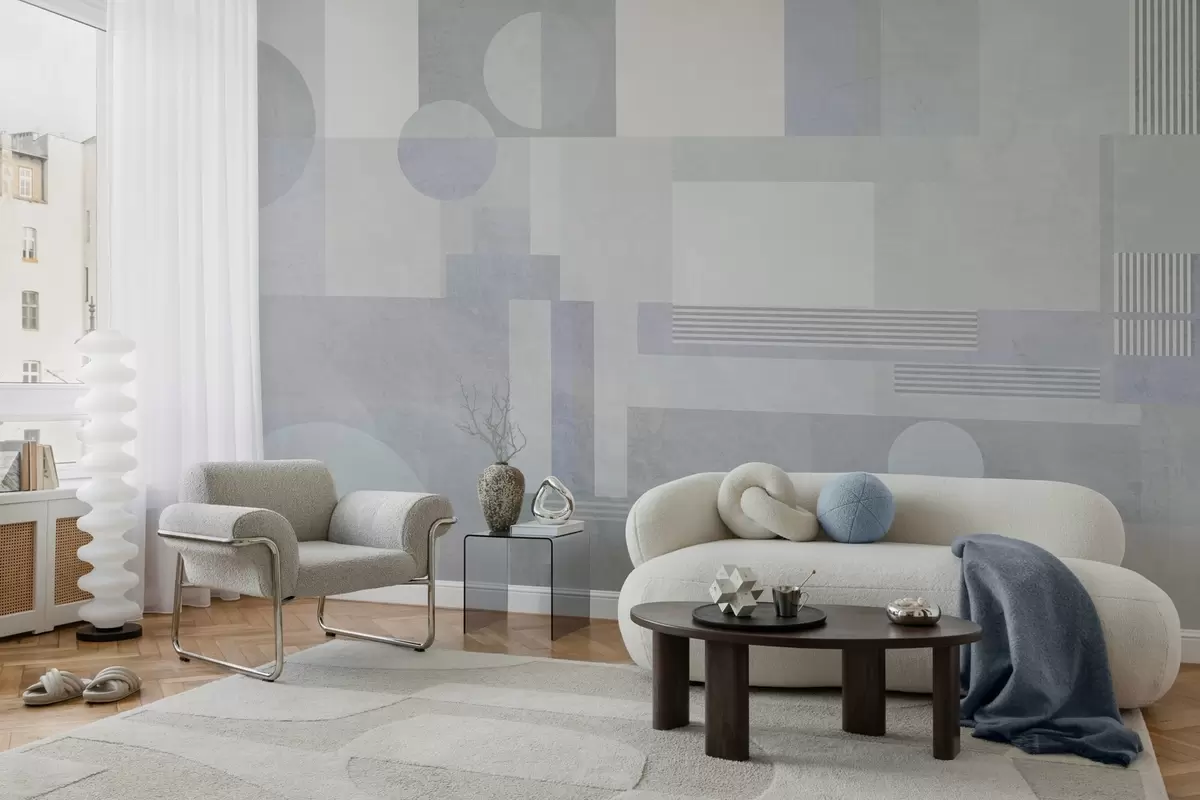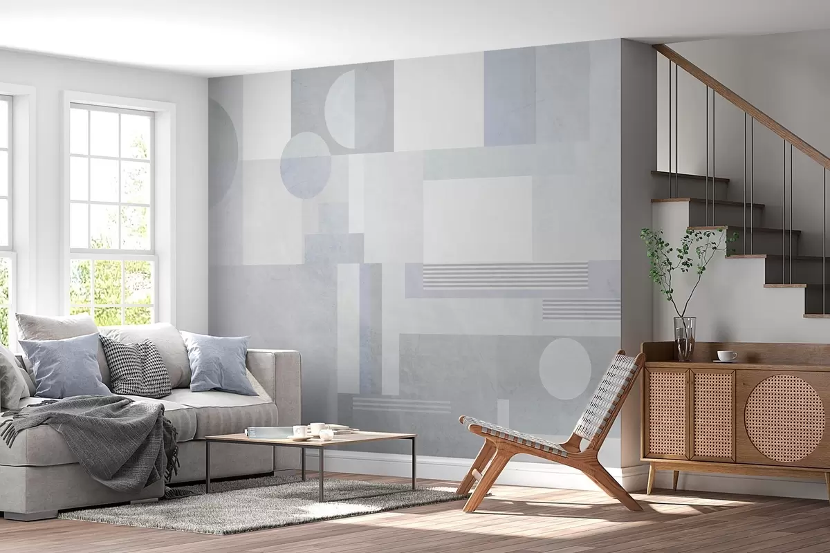 Zidne murale apstraktna geometrija u sivo-plavim tonovima br. w04635v2