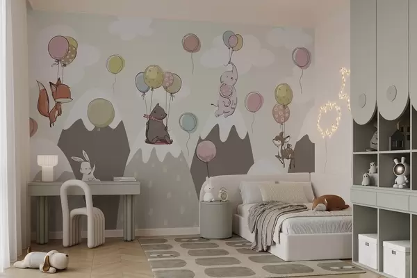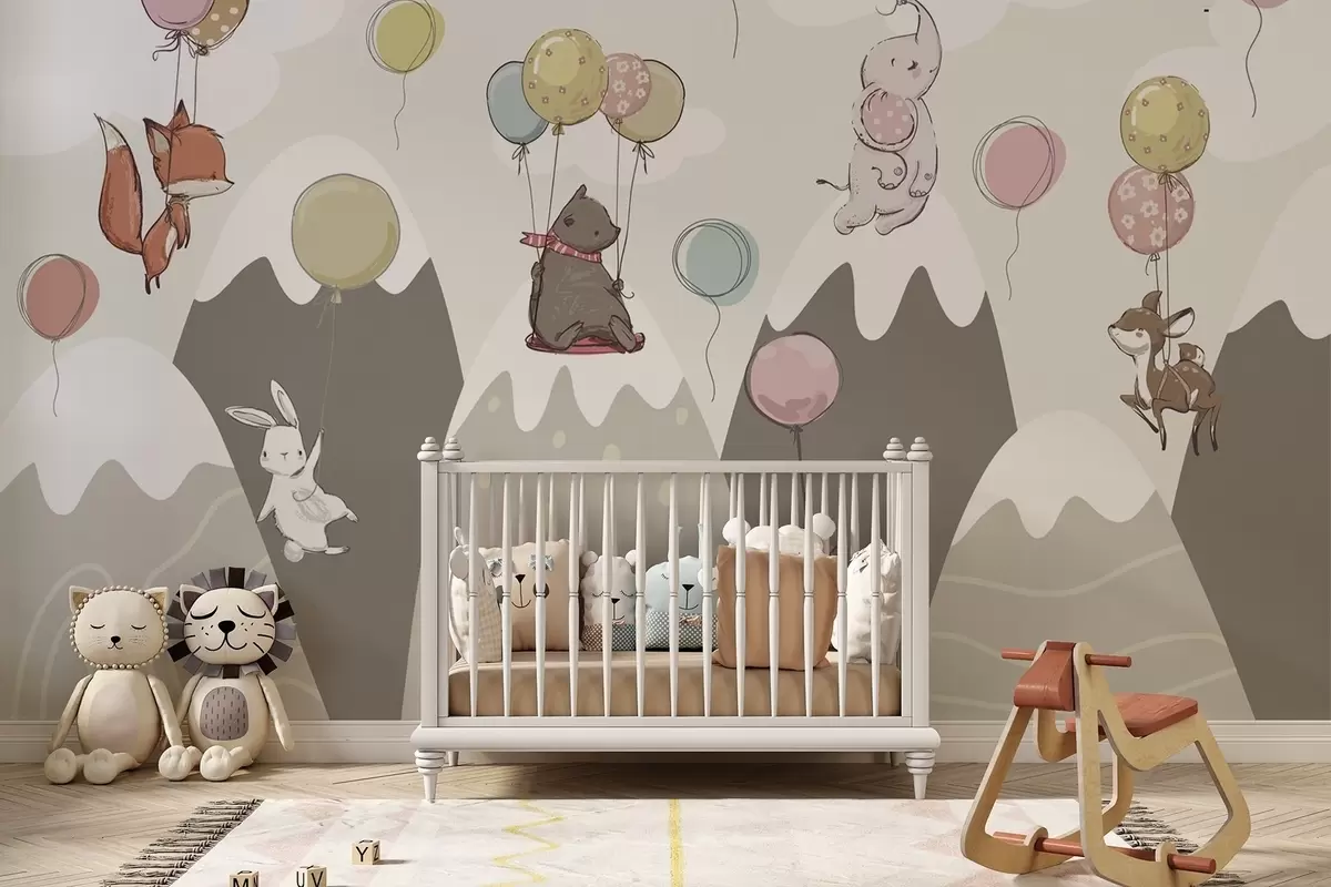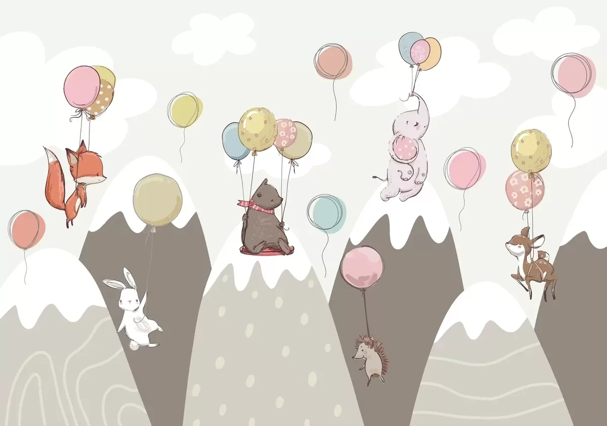 Zidne murale Dječje skandinavske planine sa životinjama br. w04651