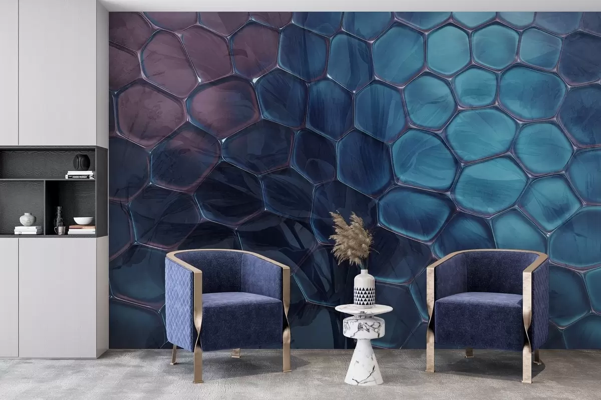 Zidne murale Lišće kroz stakleno saće br. w04667v1