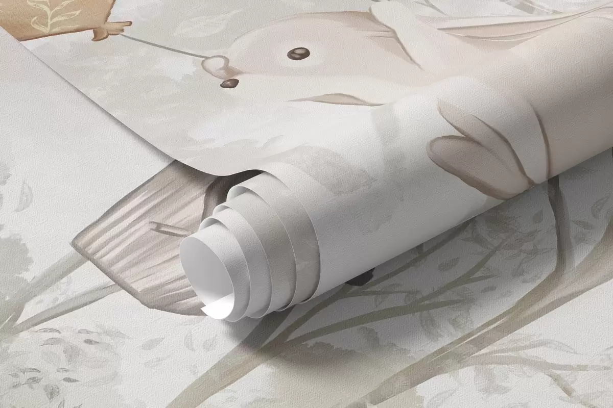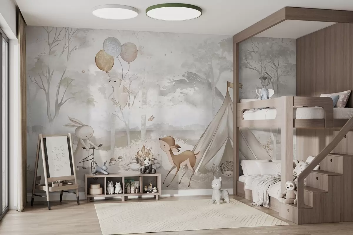 Zidne murale Dječji kamp u toplim bež tonovima, šator i šumske životinje br. w04671