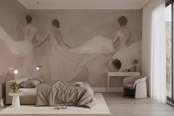 Zidne murale Tri žene u ružičastim haljinama, lepršava tkanina, mekoća br. w04709