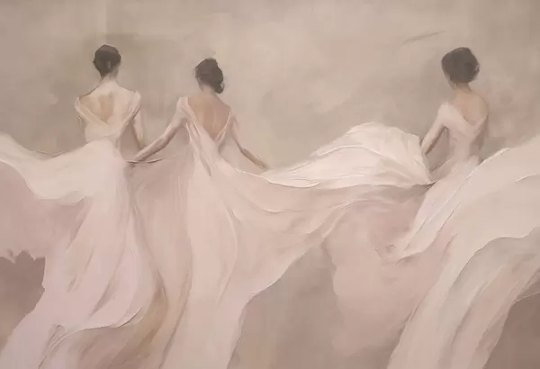 Zidne murale Tri žene u ružičastim haljinama, lepršava tkanina, mekoća br. w04709