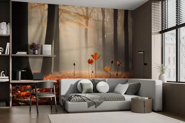 Zidne murale Jesenska šuma sa sunčevim zrakama i svijetlim lišćem br. w04710