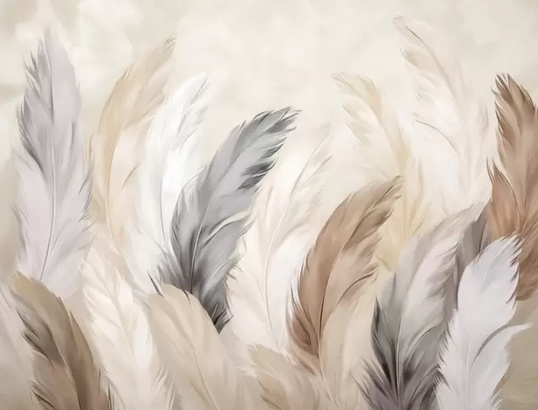Zidne murale Meko pahuljasto perje u toploj neutralnoj paleti boja br. w04736