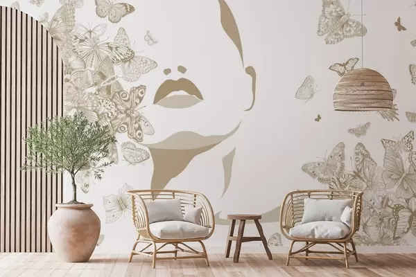 Zidne murale Silueta lica među leptirima br. w04778v2
