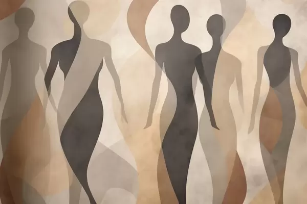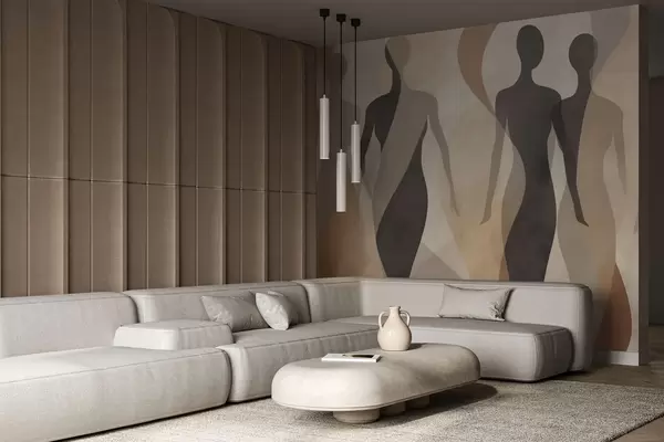 Zidne murale Siluete figura i meki valovi u toplim bež-sivim tonovima br. w04787