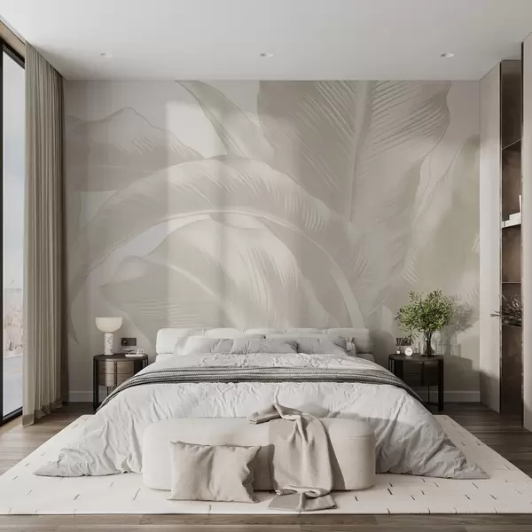 Zidne murale Dugi listovi, listovi banane s istrošenim efektom br. w04827
