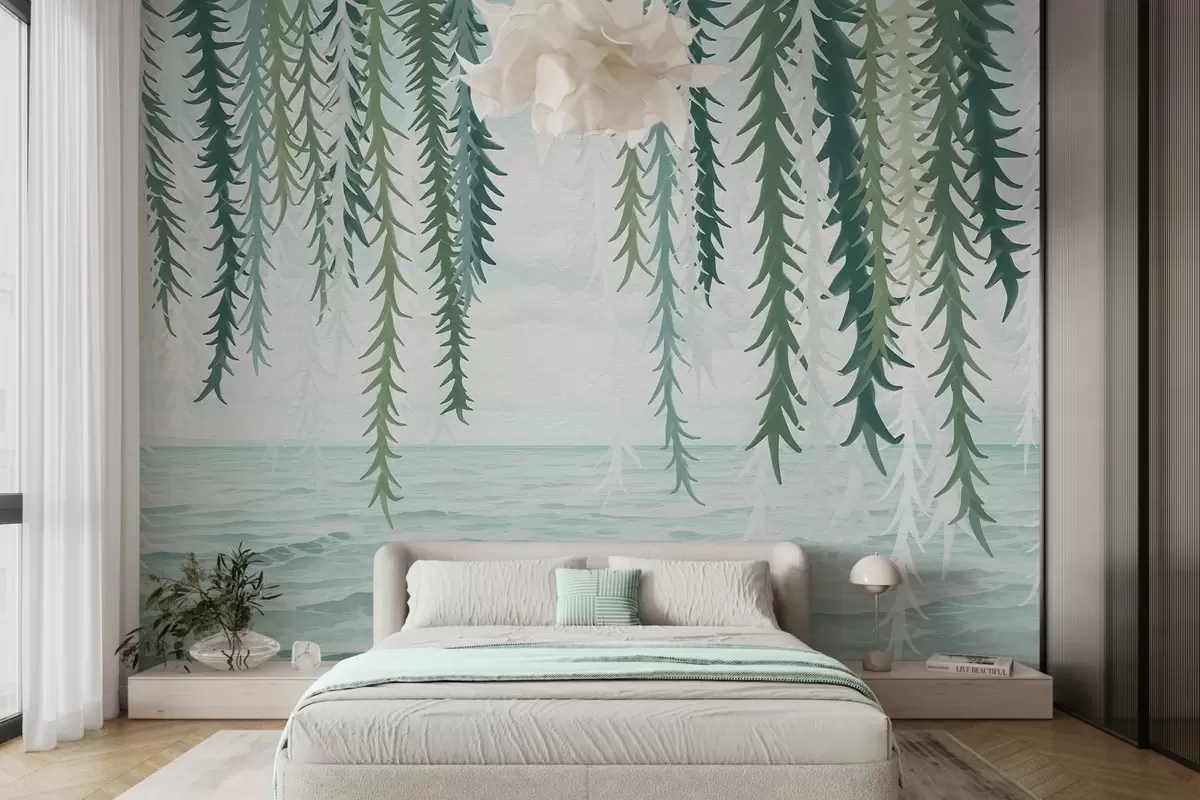 Zidne murale Nježne vinove loze vise nad vodom u akvarelu br. w04830