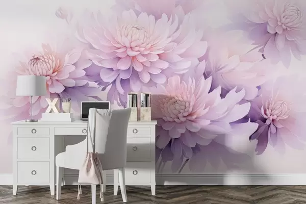 Zidne murale Bujne akvarelne krizanteme na svijetloj pozadini br. w04832