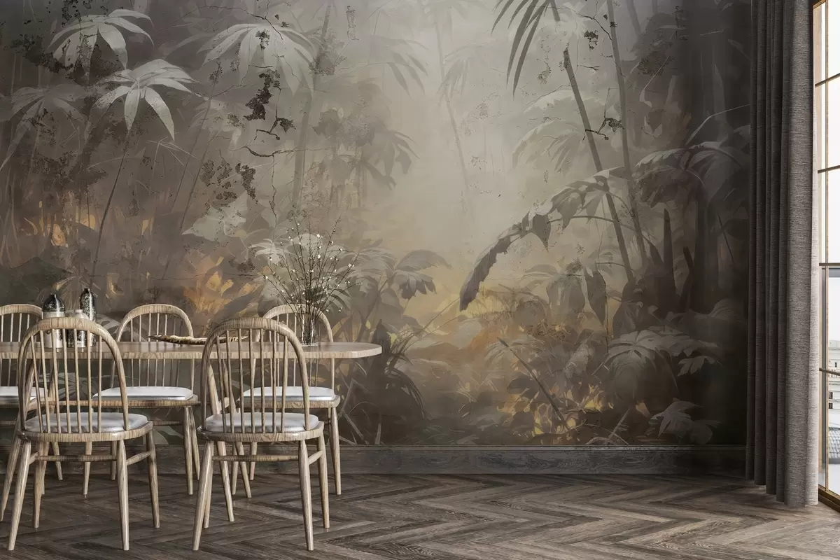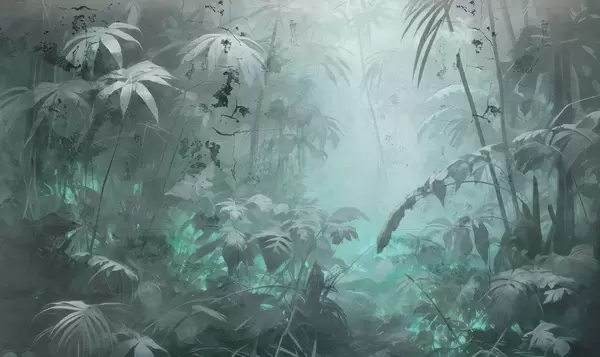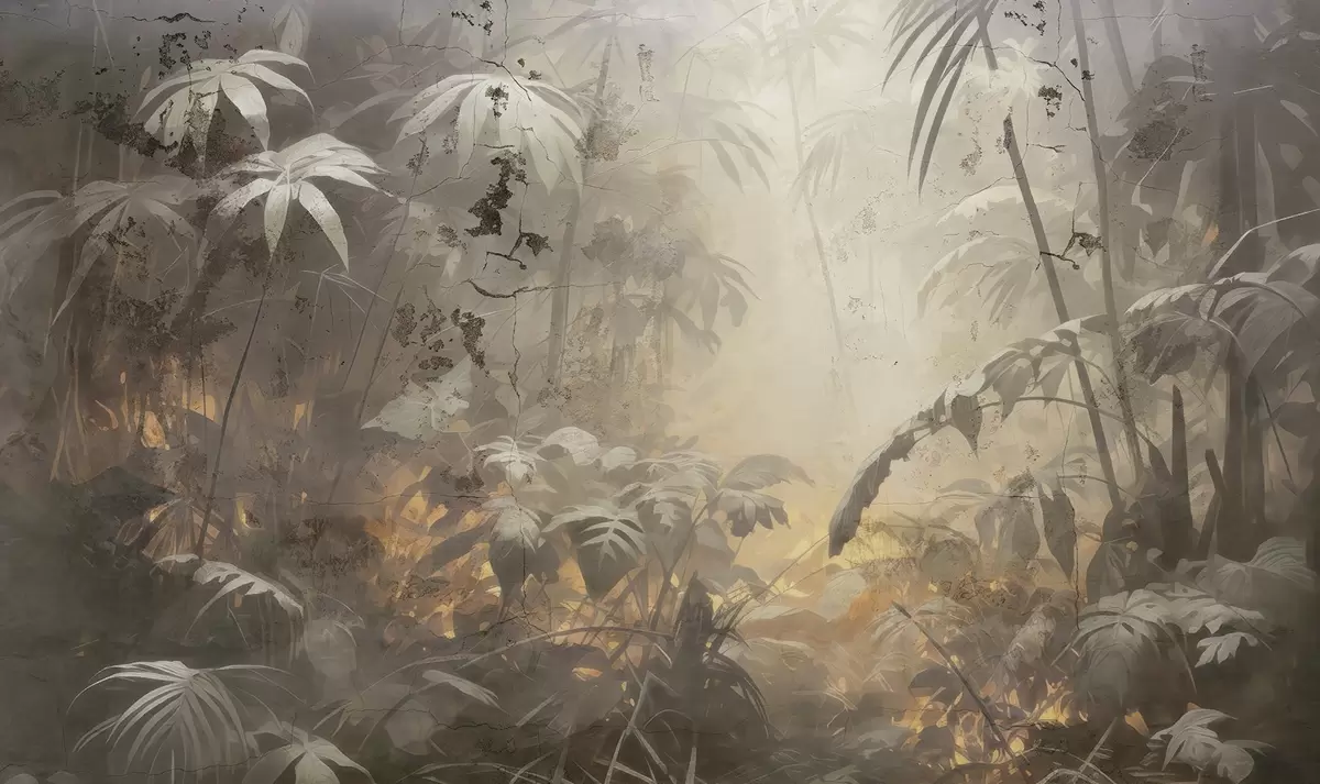 Zidne murale Oslikana džungla iza grunge betonskog zida br. w04833