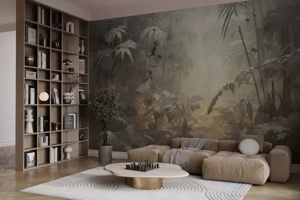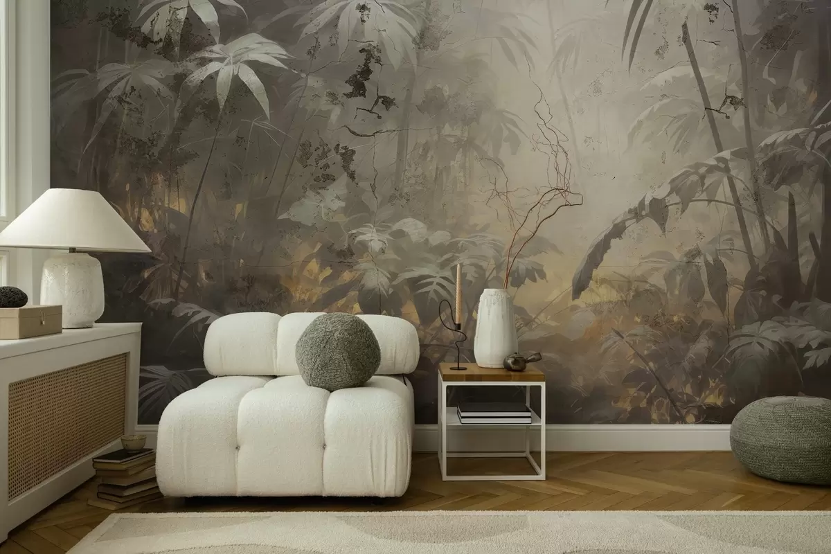 Zidne murale Oslikana džungla iza grunge betonskog zida br. w04833